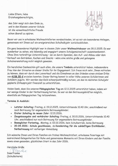 19.12.2025 Unterrichtsschluss nach der