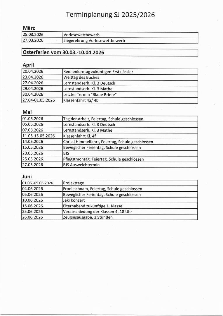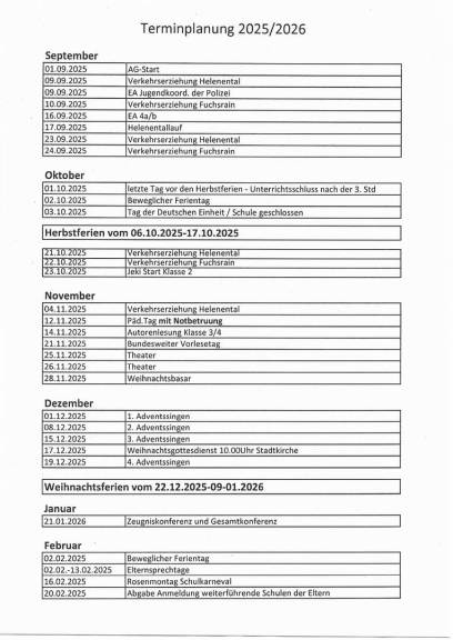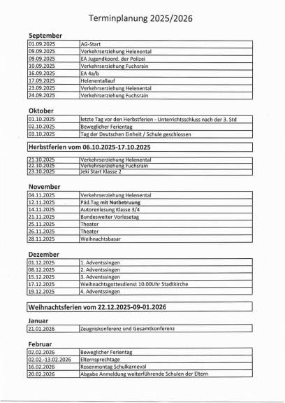 Bewegliche Ferientage für das Schuljahr 25/26: